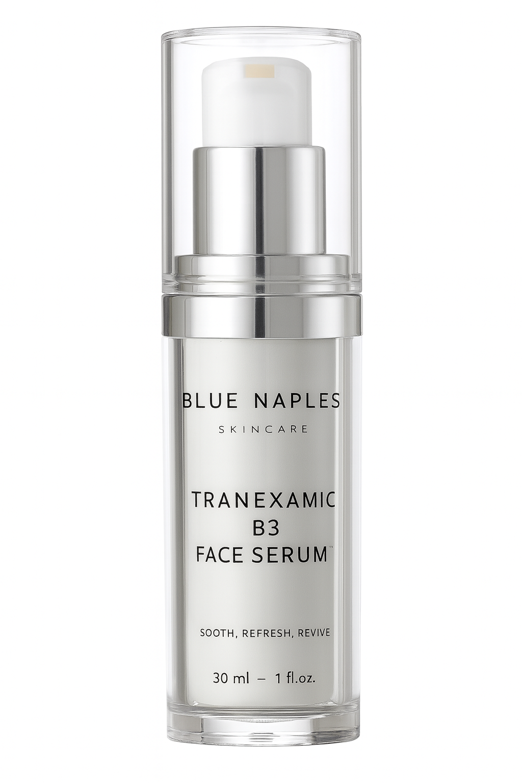 BLUE NAPLES TRANEXAMIC B3 Face Serum – 30ml glass bottle with pump dispenser for brightening and calming skin