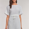 Off-white Short Sleeve Relaxed Fit Draw String Tie Waist Detail Mini Dress
