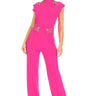 EYELET WITH CHAIN DEATILED FASHION JUMPSUIT. CAP SLEEVE, CHAIN DETAIL ON THE SHOULDER AND THE WAIST