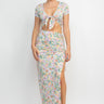 Front Knot Floral Top & Ruched Maxi Skirts Set