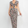 Front Knot Floral Top & Ruched Maxi Skirts Set