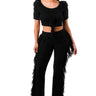 Cable Knit Pants sets. Short Sleeve Fringe Crop Top. Fringe Pants