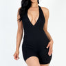 Casual Solid Halter V Neck Ribbed Bodycon Romper