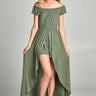 Show off your figure and look fashionable with this off shoulder romper with a maxi overlay. You will turn heads with this statement piece, but as always with Emerald we make sure your'e comfortable