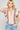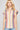 A woven shirt in multicolor striped with collared neckline and button-front closure with wood buttons. This striped shirt also features short, cuffed kimono sleeves, pleated back, and frayed hem detail.